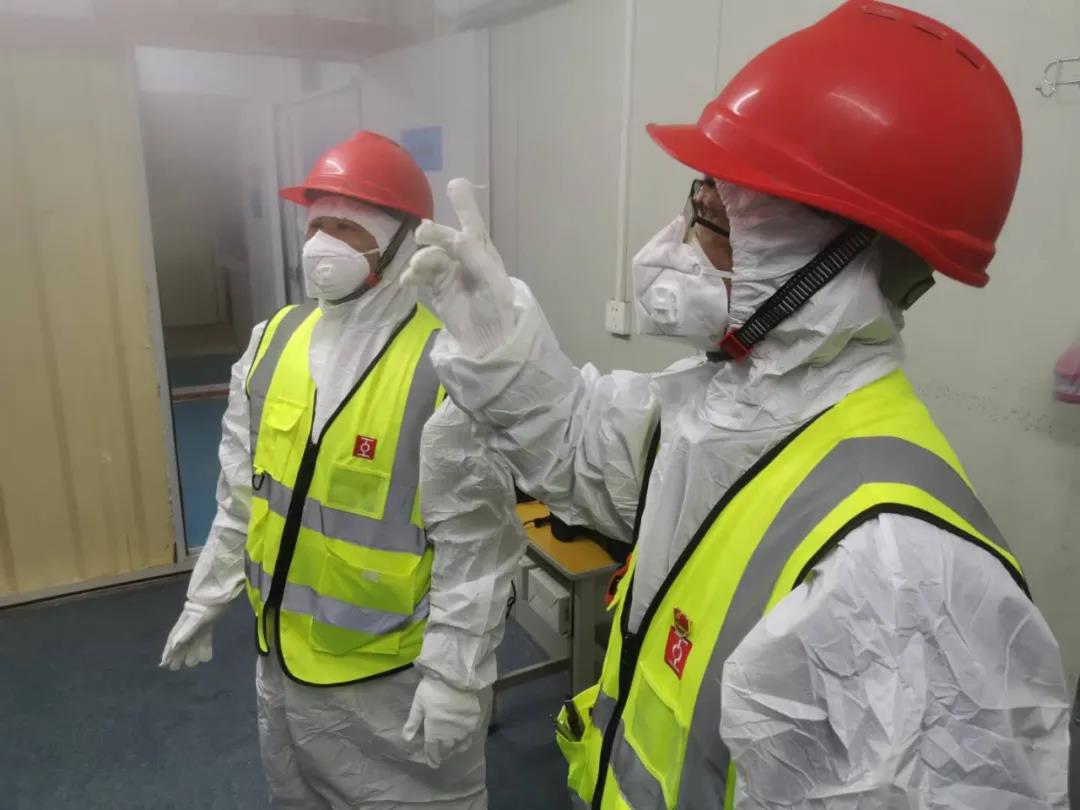 疫情就是命令,时间就是生命。赶到方舱医院,已是晚上8点。由于此次维保区域属于半污染区,崔东和一同前往的蔡贵祥、黄恺必须全副武装。换上了防护设备,三人相视一笑,给对方竖起了一个大拇指,相互鼓励,就开始进入战斗了。