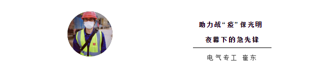 2月22日下午3时许,正在汉阳方舱医院1#仓进行电气设备安装的崔东紧急接到命令,已投入使用的省委党校方舱医院的浴室部分电气设备出现故障“护士进舱通道、更衣室急需通电,需要立刻进行维修!”此时的湖北工建安装突击队员崔东已经在汉阳方舱医院连续工作了长达24个小时。他声音沙哑、眼里布满血丝,浑身透着疲惫,体能几近极限。但是,关键时刻崔东没有丝毫的犹豫,立即收拾好电工包朝着位于武汉市黄陂区的省委党校新校区进发