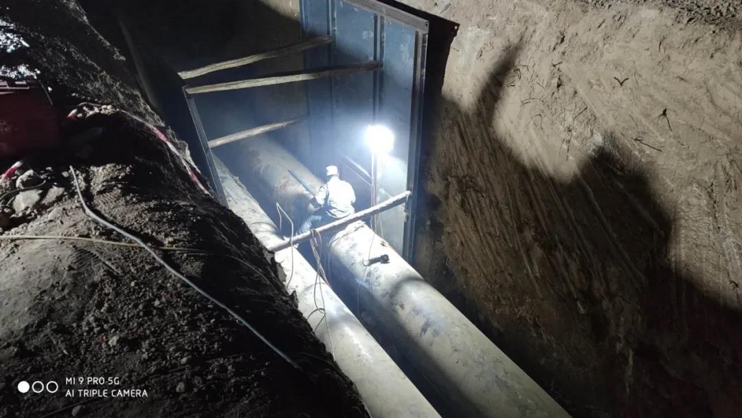 时间紧、任务重、人员紧缺,摆在新港管网项目部面前的不仅是压力,更是与时间赛跑的加速力。在第二事业部经理李强生、项目负责人常庆林为工程质量和项目职工的安全健康防护,连续几天都在工地上奋战到深夜。在他们的统筹协调下,大家倒排工期、严控节点,全体管理人员主动放弃休息时间,24小时轮流坚守在施工现场,分秒必争。短短10天,该项目已完成近40%的基坑开挖及管道敷设工作,管道焊接、探伤及保温等工作同步进行。