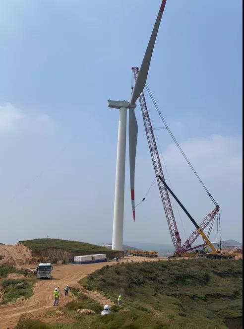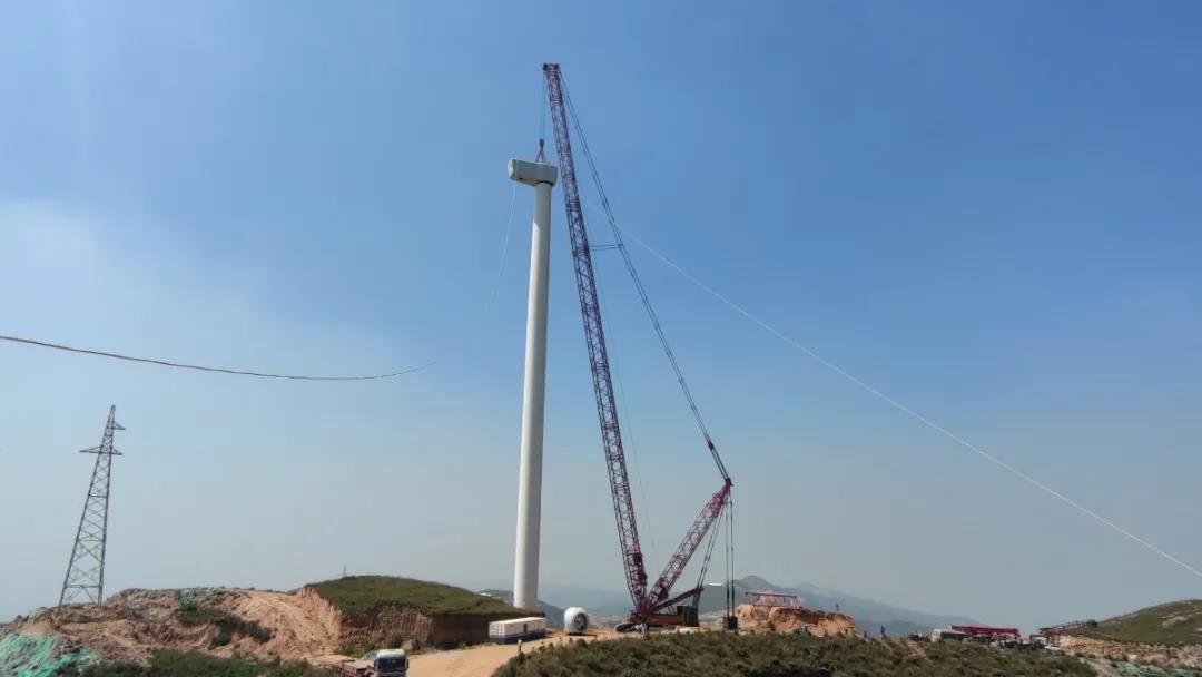 9月11日,随着重达76吨,直径140米的巨大风轮缓缓升起精准对接到离地90米高度的主轴部件,位于山西省侯马市紫金山的湖北工建安装公司风电项目首台风机吊装成功!这标志着湖北工建安装公司具备成熟的风电吊装技术,向风电机组安装领域迈出实质性的坚实一步,铁军风电高塔屹立于紫金山之巅!