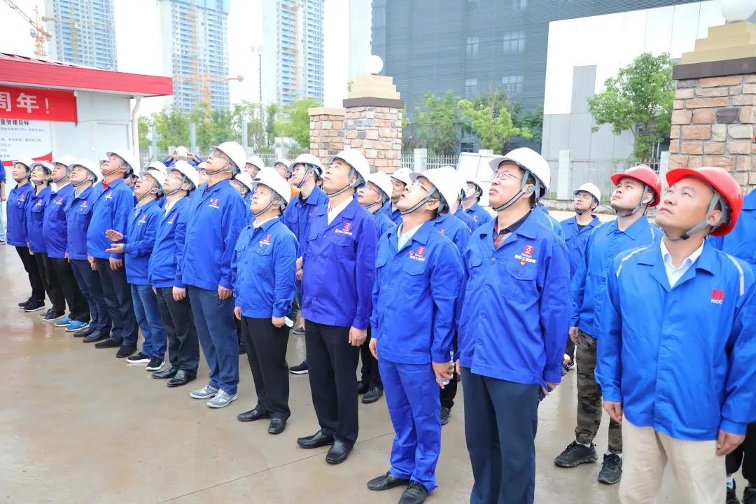 公司多个在建项目同时举行升旗仪式,深情祝愿湖北工建蓬勃发展,祝福湖北工建明天更加美好。