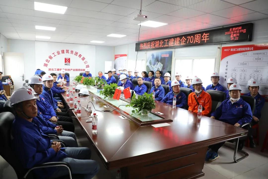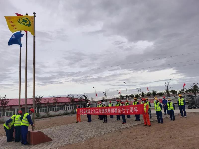 2020年9月19日,为庆祝湖北省工业建筑集团有限公司建企70周年,湖北工建安装公司在湖北工建机电科技产业园项目隆重举行升旗仪式。9时19分,在雄壮有力的义勇军进行曲的伴奏下,现场全体干部职工注目鲜红的五星红旗和湖北工建司旗缓缓升起,齐声高唱国歌,满怀豪情地迎接湖北工建集团70周岁生日。