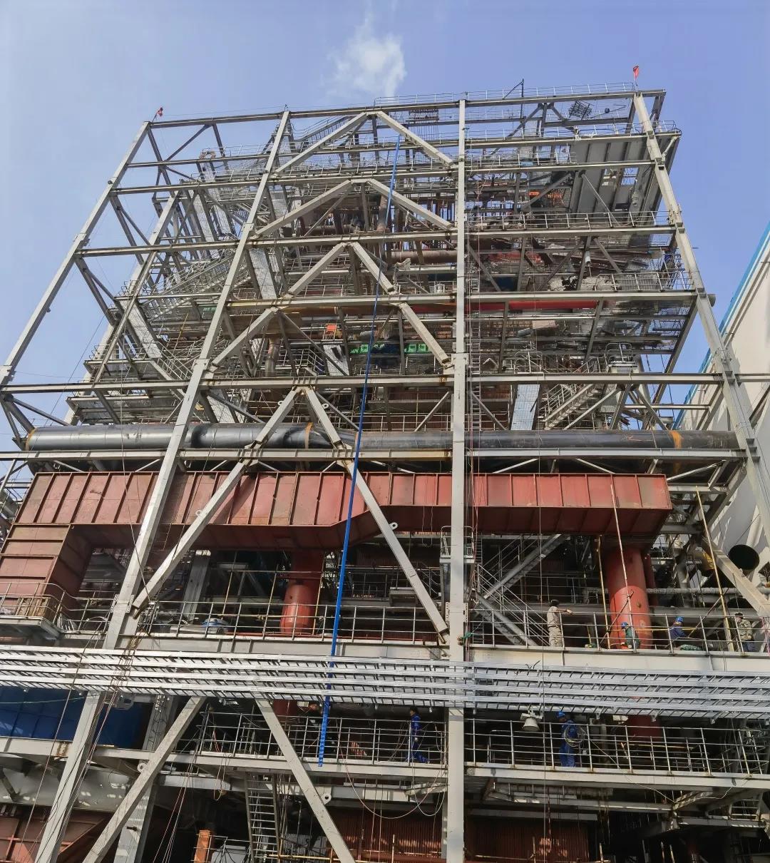 2020年8月20日开工以来项目进度推进面临一系列困难,但项目部全体员工坚定决心和意志,发扬不怕难仗不怕苦仗的战斗精神,综合考虑影响施工进度的因素,加强与工程建设单位的协调,保证好物资供应进度,不断优化施工进度计划及施工方案。针对业主要求的水压试验节点的要求,项目部认真研讨方案对锅炉受热面系统管道的焊接和一次密缝焊接做好检查和热处理,合理组织协调人力和施工机械确保了施工质量和关键进度节点目标的实现。